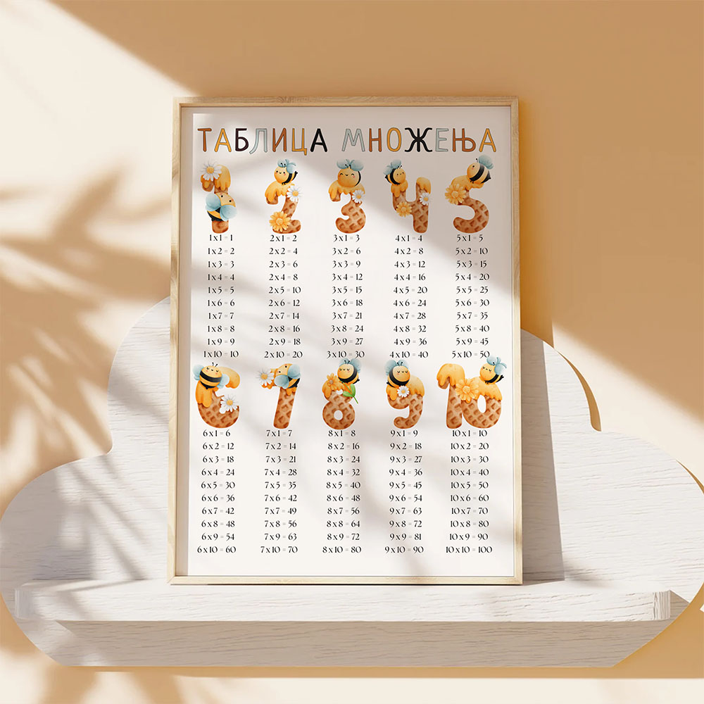 🐝Topla i razigrana tablica množenja sa pčelicama🐝, koja podstiče fokus i učenje kroz vizuelnu igru. Dolazi u dve dimenzije, sa ili bez rama – idealna za sobu, učenje i kao pažljivo odabran poklon.