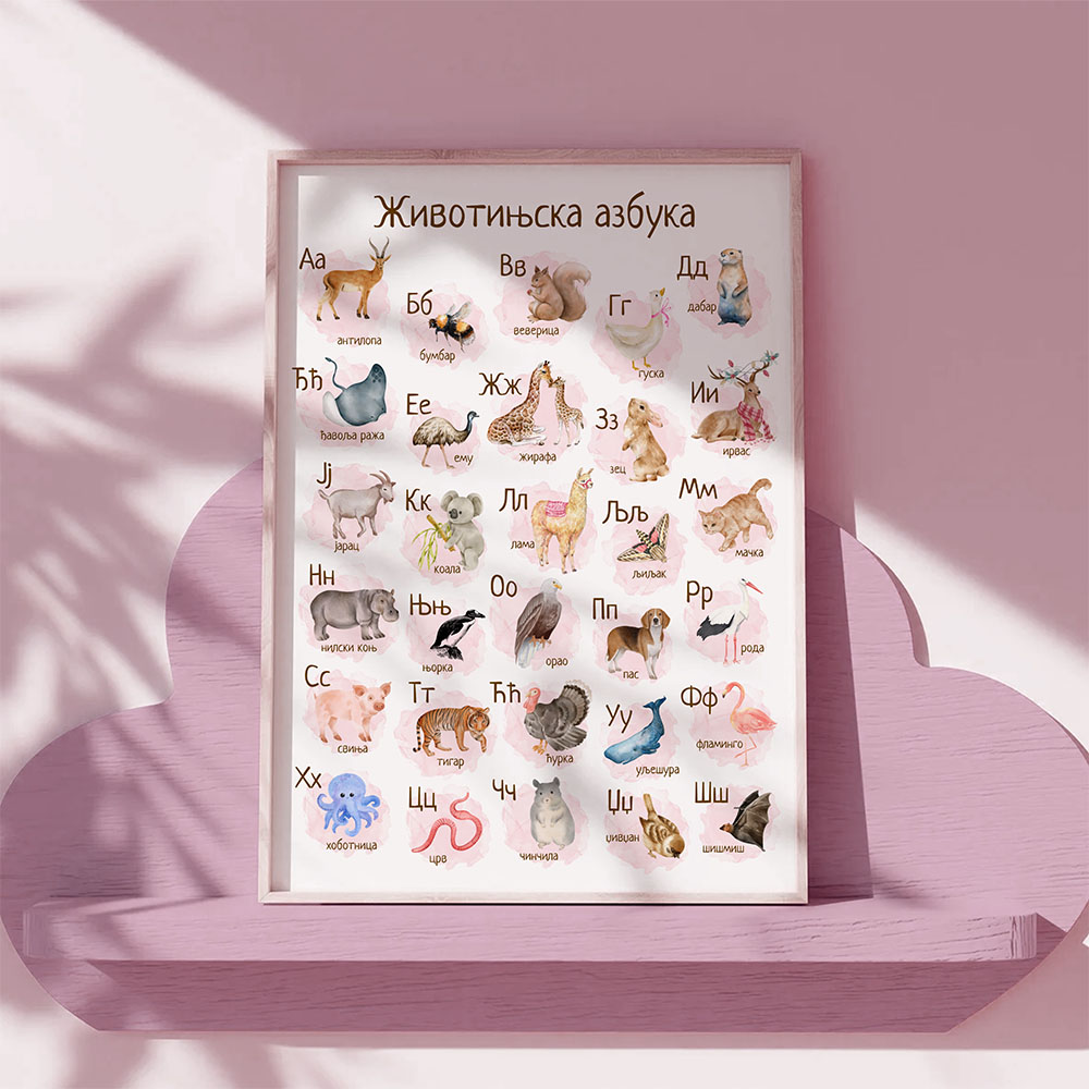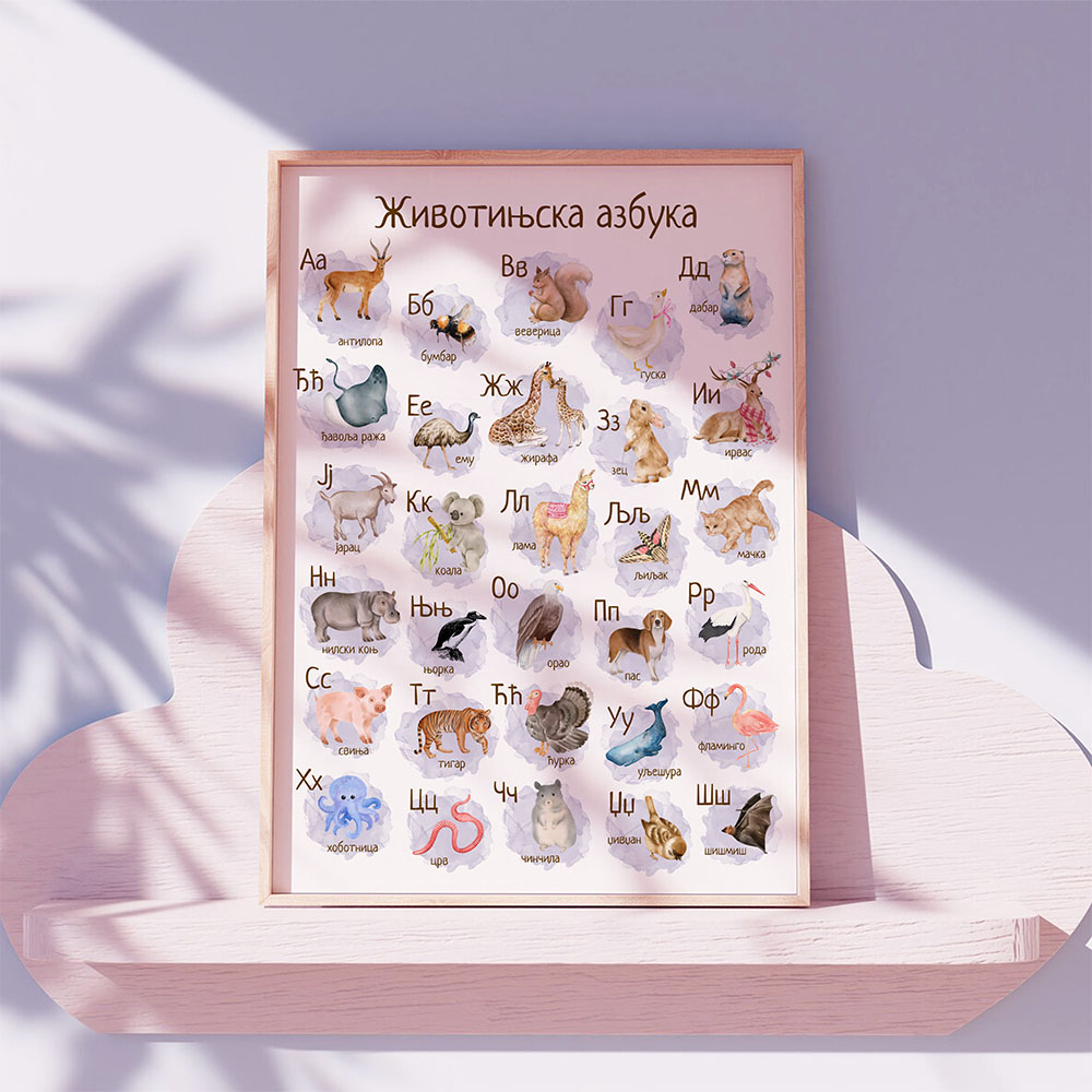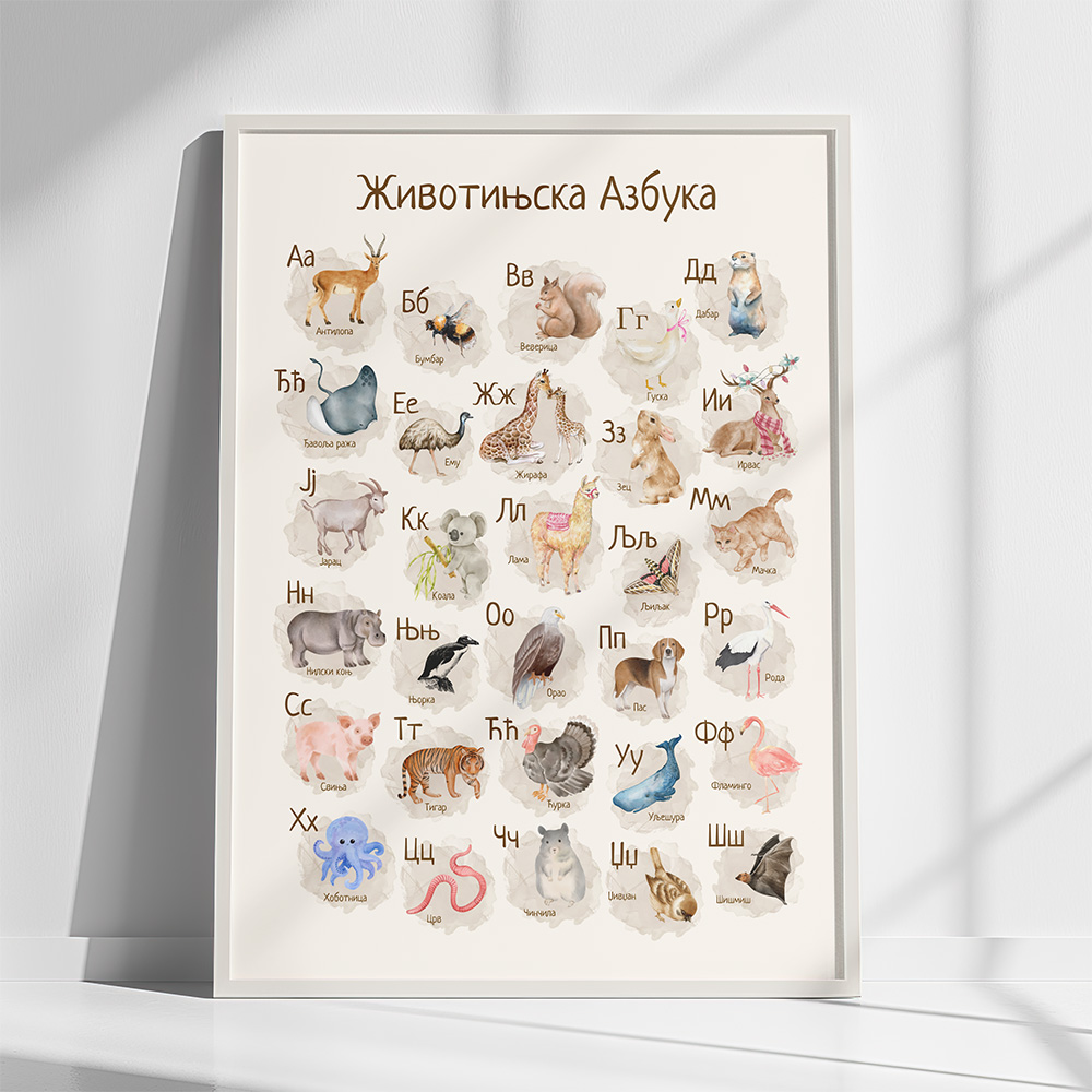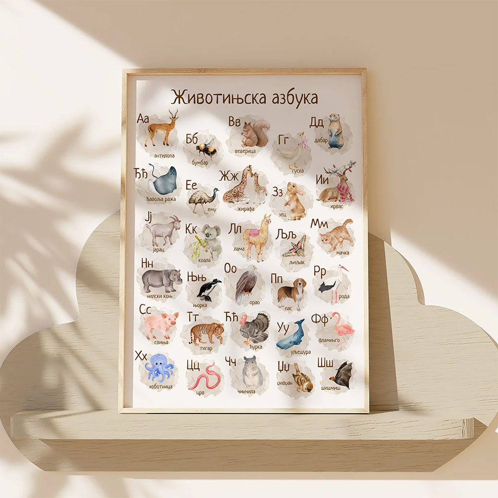 Azbuka za učenje slova na kreativan način! 🌿✨ Ilustrovana u prelepoj akvarel tehnici. Edukativna slika koja inspiriše mališane da kroz igru i umetnost upoznaju slova. Dostupna u dve veličine, savršeno se uklapa u dečju sobu i podstiče učenje kroz vizuelnu estetiku i maštovite ilustracije. 📖🎨 Idealna za prve korake u svetu slova!